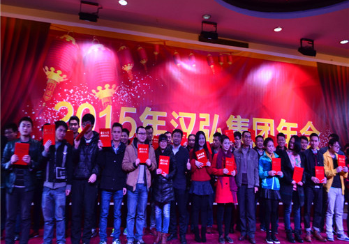 本次年会精彩纷呈,高潮迭起,整个现场充满了激情、热烈、活跃的气氛。先是集团对2015年度优秀员工及团队进行了表彰与嘉奖,这也是对员工最大的肯定与认可。面对这么多可爱、可敬的员工,汉弘集 团各位领导人为其颁奖,与其合影留念。颁奖结束后,大家共同举杯,年会正式进入晚宴及节目表演环节。
